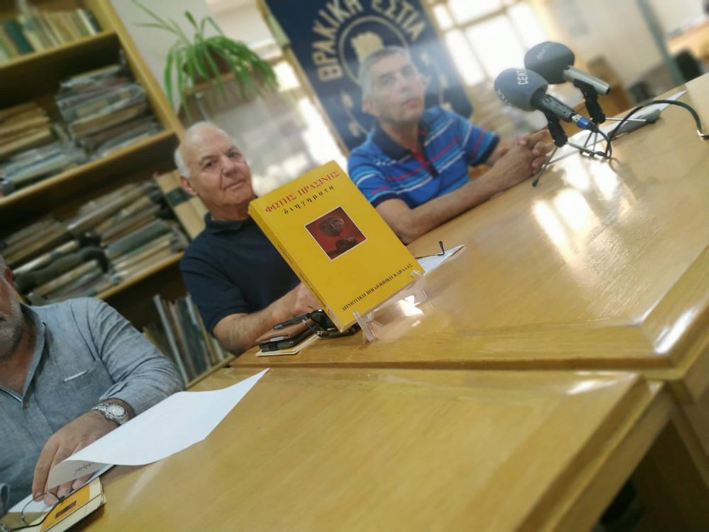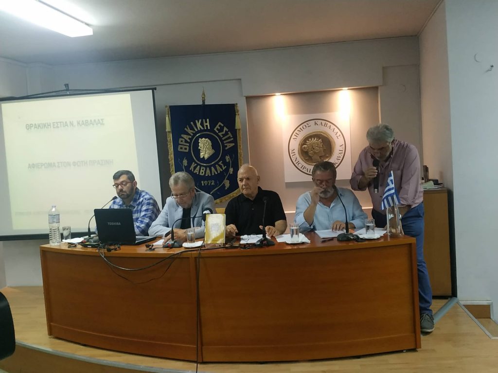 Με εκλεκτούς καλεσμένους πραγματοποιήθηκε, το βράδυ της 23ης Οκτωβρίου στη Δημοτική Βιβλιοθήκη Καβάλας το αφιέρωμα στο λογοτέχνη Φώτη Πρασίνη. Οι δύο ομιλητές της βραδιάς, ο συγγραφέας Διαμαντής Αξιώτης και ο φιλόλογος και π. βουλευτής Δημήτριος Εμμανουηλίδης, παρουσίασαν με το δικό τους μοναδικό τρόπο τη ζωή και το έργο του μεγάλου Θρακιώτη διηγηματογράφου που πέρασε από την πόλη μας, αφήνοντας μία πλούσια λογοτεχνική παρακαταθήκη με την Καβάλα κεντρική ηρωίδα στα γραπτά του. Ένα σπουδαίο λογοτεχνικό έργο που ποτέ δεν κατάφερε εν ζωή να εκδώσει.” Έφυγε πικραμένος”, όπως πολύ χαρακτηριστικά ανέφερε ο κύριος Αξιώτης που είχε τη χαρά να τον γνωρίζει προσωπικά.